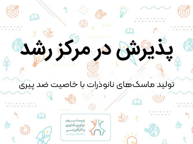 به گزارش روابط عمومی و اطلاع‌رسانی دانشگاه بیرجند، ایده فناورانه تولید ماسک‌های صورت حاوی نانوذرات با خاصیت ضدپیری و رهایش کنترل‌شده، توسط یکی از پژوهشگران جوان دانشگاه بیرجند، موفق به پذیرش در مرکز رشد واحدهای فناور این دانشگاه شد.